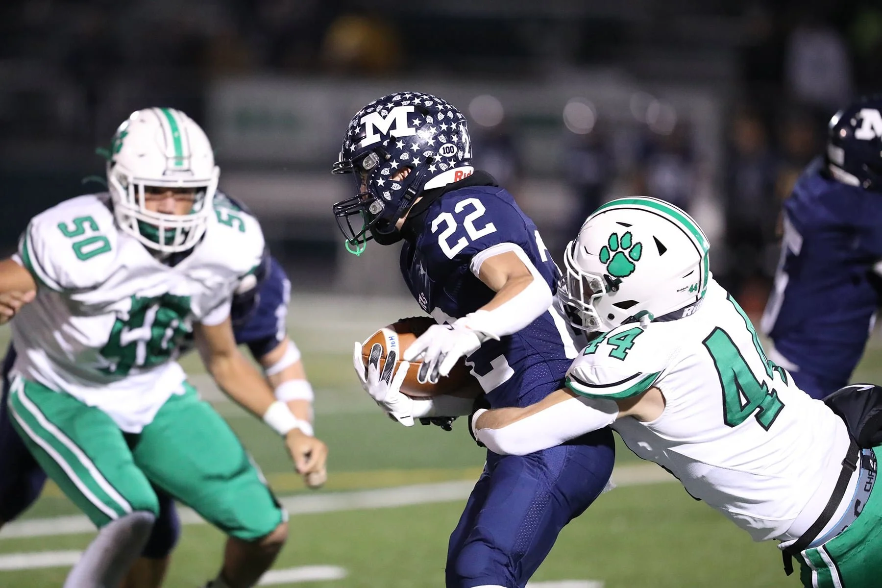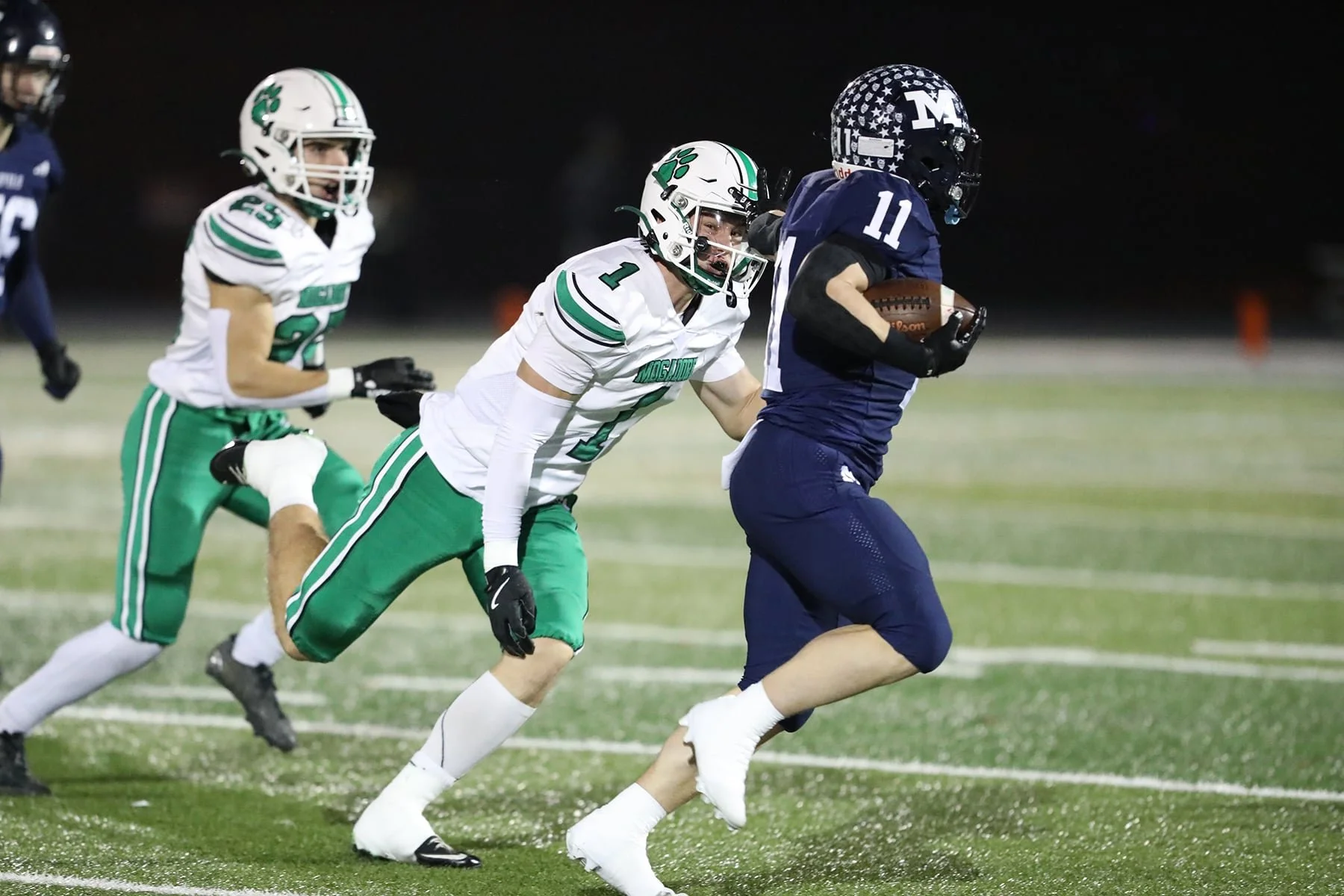 As they did all night, McDonald would answer the Mogadore score after Miller busted off a 36-yard touchdown on the first play of the 4th quarter. The PAT put the Blue Devils up 35-21.